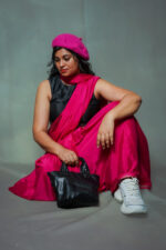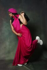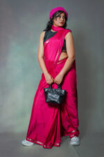 The saree features a rich pink hue that radiates feminine beauty, paired with a matching running blouse piece (1 meter) to help you customize your perfect fit. Its subtle sheen and soft texture make it a delight to wear throughout the day or evening.